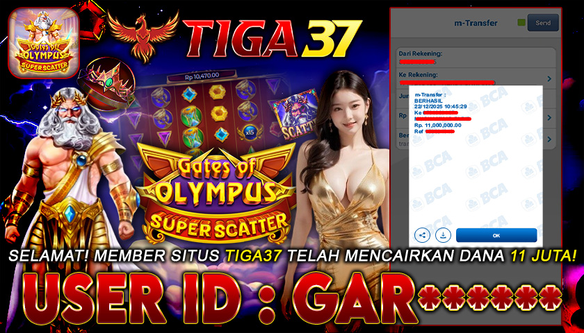 Kabar kemenangan datang dari Tiga37, di mana salah satu member dengan ID : GAR***** sukses meraih jackpot Rp 11.000.000 dalam permainan Gates of Olympus SUPER SC. Proses pencairan berlangsung cepat dan terbukti lunas tanpa kendala, menegaskan reputasi Tiga37 sebagai platform terpercaya yang selalu menepati janji pembayaran untuk setiap kemenangan membernya.