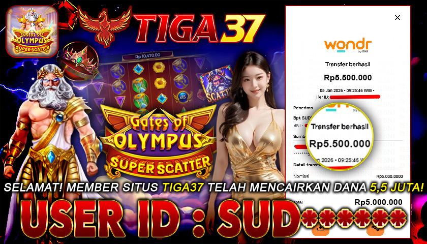 Kabar kemenangan datang dari Tiga37, di mana salah satu member dengan ID : NAS***** sukses meraih jackpot Rp 10.000.000 dalam permainan Mahjong Ways. Proses pencairan berlangsung cepat dan terbukti lunas tanpa kendala, menegaskan reputasi Tiga37 sebagai platform terpercaya yang selalu menepati janji pembayaran untuk setiap kemenangan membernya.