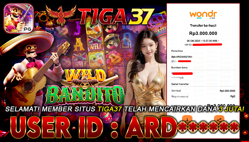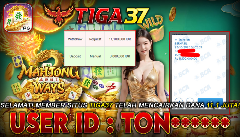 Kabar kemenangan datang dari Tiga37, di mana salah satu member dengan ID : YOG***** sukses meraih jackpot Rp 6.000.000 dalam permainan Mahjong Ways. Proses pencairan berlangsung cepat dan terbukti lunas tanpa kendala, menegaskan reputasi Tiga37 sebagai platform terpercaya yang selalu menepati janji pembayaran untuk setiap kemenangan membernya.