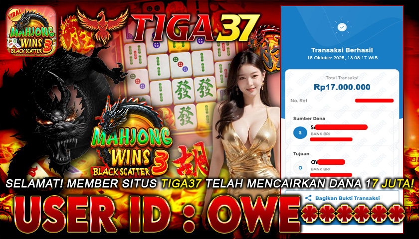 Kabar kemenangan datang dari Tiga37, di mana salah satu member dengan ID : PAN***** sukses meraih jackpot Rp 8.500.000 dalam permainan Mahjong Ways. Proses pencairan berlangsung cepat dan terbukti lunas tanpa kendala, menegaskan reputasi Tiga37 sebagai platform terpercaya yang selalu menepati janji pembayaran untuk setiap kemenangan membernya.