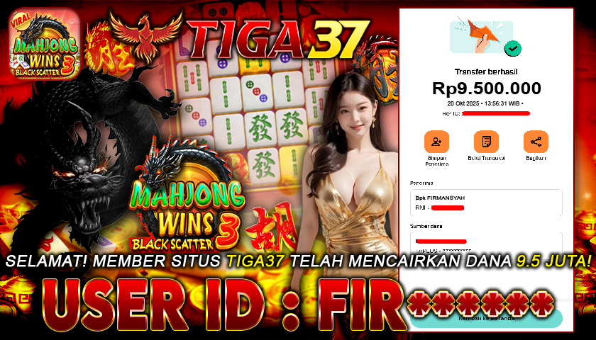 Kabar kemenangan datang dari Tiga37, di mana salah satu member dengan ID : HEN***** sukses meraih jackpot Rp 11.000.000 dalam permainan Mahjong Wins: Black Scatter 3. Proses pencairan berlangsung cepat dan terbukti lunas tanpa kendala, menegaskan reputasi Tiga37 sebagai platform terpercaya yang selalu menepati janji pembayaran untuk setiap kemenangan membernya.