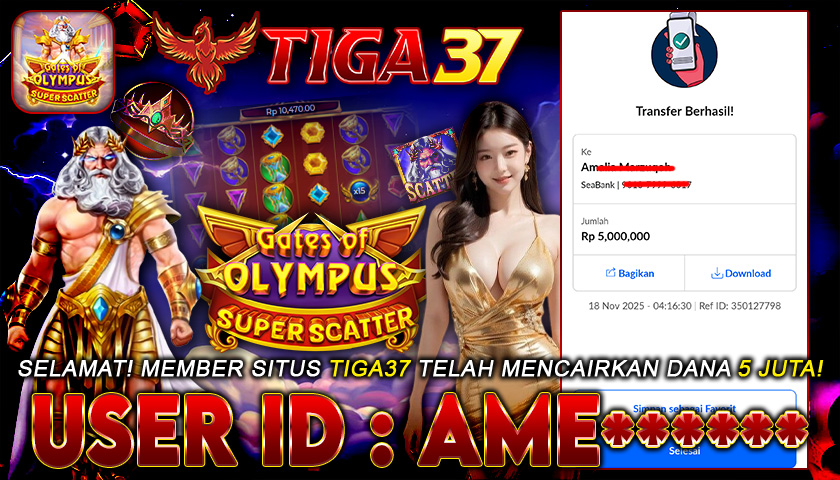 Kabar kemenangan datang dari Tiga37, di mana salah satu member dengan ID : AME***** sukses meraih jackpot Rp 5.000.000 dalam permainan Sweet Bonanza 1000. Proses pencairan berlangsung cepat dan terbukti lunas tanpa kendala, menegaskan reputasi Tiga37 sebagai platform terpercaya yang selalu menepati janji pembayaran untuk setiap kemenangan membernya.