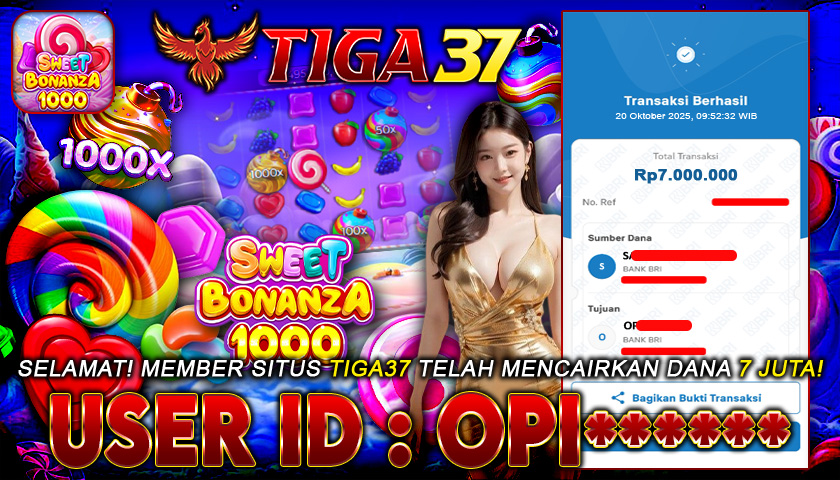 Kabar kemenangan datang dari Tiga37, di mana salah satu member dengan ID : OPI***** sukses meraih jackpot Rp 7.000.000 dalam permainan Sweet Bonanza 1000. Proses pencairan berlangsung cepat dan terbukti lunas tanpa kendala, menegaskan reputasi Tiga37 sebagai platform terpercaya yang selalu menepati janji pembayaran untuk setiap kemenangan membernya.