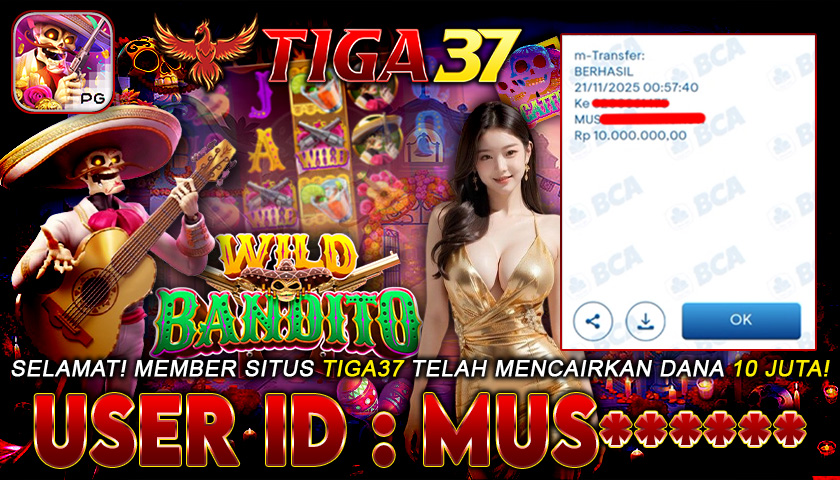 Kabar kemenangan datang dari Tiga37, di mana salah satu member dengan ID : MUS***** sukses meraih jackpot Rp 10.000.000 dalam permainan Wild Bandito. Proses pencairan berlangsung cepat dan terbukti lunas tanpa kendala, menegaskan reputasi Tiga37 sebagai platform terpercaya yang selalu menepati janji pembayaran untuk setiap kemenangan membernya.