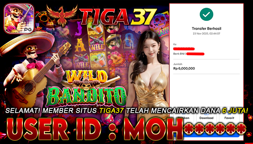 Kabar kemenangan datang dari Tiga37, di mana salah satu member dengan ID : YUS***** sukses meraih jackpot Rp 4.800.000 dalam permainan Wild Bandito. Proses pencairan berlangsung cepat dan terbukti lunas tanpa kendala, menegaskan reputasi Tiga37 sebagai platform terpercaya yang selalu menepati janji pembayaran untuk setiap kemenangan membernya.