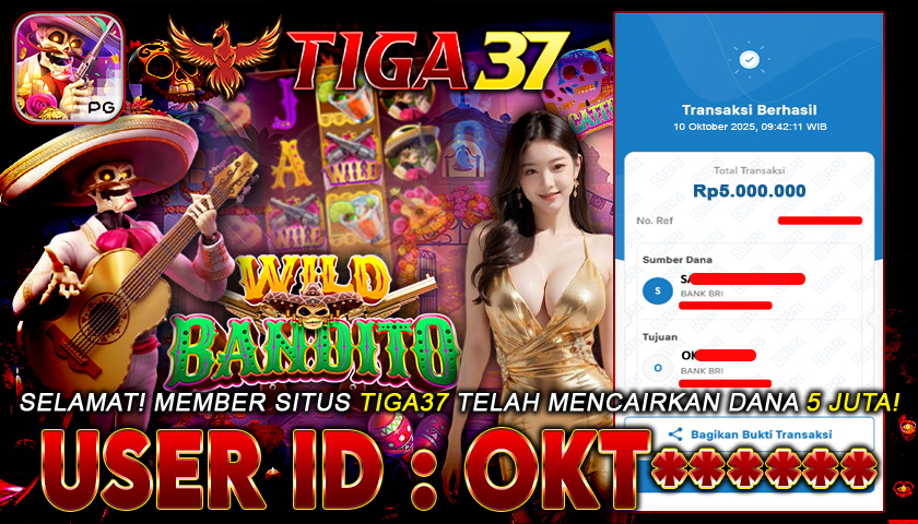 Kabar kemenangan datang dari Tiga37, di mana salah satu member dengan ID : FER***** sukses meraih jackpot Rp 7.500.000 dalam permainan Wild Bandito. Proses pencairan berlangsung cepat dan terbukti lunas tanpa kendala, menegaskan reputasi Tiga37 sebagai platform terpercaya yang selalu menepati janji pembayaran untuk setiap kemenangan membernya.