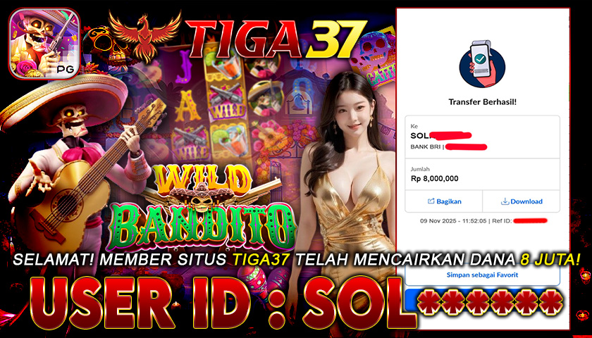 Kabar kemenangan datang dari Tiga37, di mana salah satu member dengan ID : SOL***** sukses meraih jackpot Rp 8.000.000 dalam permainan Wild Bandito. Proses pencairan berlangsung cepat dan terbukti lunas tanpa kendala, menegaskan reputasi Tiga37 sebagai platform terpercaya yang selalu menepati janji pembayaran untuk setiap kemenangan membernya.