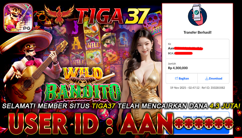 Kabar kemenangan datang dari Tiga37, di mana salah satu member dengan ID : AHM***** sukses meraih jackpot Rp 12.000.000 dalam permainan Wild Bounty Showdown. Proses pencairan berlangsung cepat dan terbukti lunas tanpa kendala, menegaskan reputasi Tiga37 sebagai platform terpercaya yang selalu menepati janji pembayaran untuk setiap kemenangan membernya.