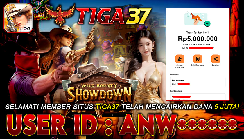 Kabar kemenangan datang dari Tiga37, di mana salah satu member dengan ID : ANW***** sukses meraih jackpot Rp 5.000.000 dalam permainan Wild Bounty Showdown. Proses pencairan berlangsung cepat dan terbukti lunas tanpa kendala, menegaskan reputasi Tiga37 sebagai platform terpercaya yang selalu menepati janji pembayaran untuk setiap kemenangan membernya.